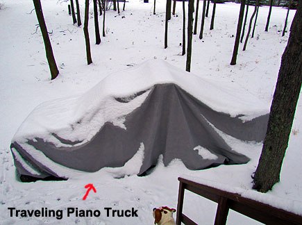 The Traveling Piano has been sitting outside under a tarp that I purchased for it. The cover fits well and the truck has been snowed on without incident. I hope it starts when I need to go somewhere. The truck is old, the battery is old... the fact that I have been staying in sub-freezing temperatures... this has given me the the opportunity to focus on other things for awhile. I have felt a need to let loose a little from the commitment to take the truck out to interact with the mission and have interesting scenarios to report with pictures for the website. I don't want to be trying to create synchronicity or spontaneity, empowerment, inspiration, music, fun, friendship, respect etc... I want to "do" it... not be "trying to do it" ...effortless ... is the key word "effortless work" and not in my time but in the flow of my life's time.