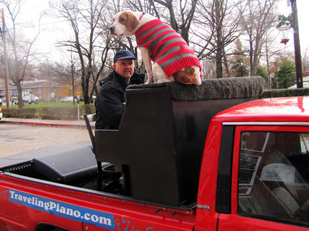Well, I got up the hill and then down and now after a week in my little hollow I need to get back up the hill quick before an ice storm hits tonight. I'm both glad and not glad about my lack of internet, television, etc... The Traveling Piano truck is probably the only vehicle in the area without four wheel drive. I've been waiting all month for the usual January thaw. It has about nine more hours to get here. I have pinto beans, cheese, some oatmeal and a lot of jelly in the house so I'm glad I got out to stack up with food. There is no urgency whatsoever to do anything concerning work, the journey on the road and that feels surreal. Of course there is always work to do but no feeling of obligation or expectation. For example, there are only a few pictures for the blog this month. After five years it feels great to not put pressure on myself. I have no feeling to entertain, create interest, hold attention of visitors to the website with pictures. Updating the site from Bo to Mo... the links and creating more clarity for the site, this has been moving slowly. (like one mile an hour) I'm really getting good at separating from it all. My taking breaks to rejuvenate are getting better and better. I'm really living in the moment. Piano Dog Mo plays a huge role concerning relational needs and feeling connected. He is my comfort, fun, friendship, respect, company, object of affection... the intimacy between us is profound. :) ... and in the same breath... I'm not out of reality, I know he's a dog.