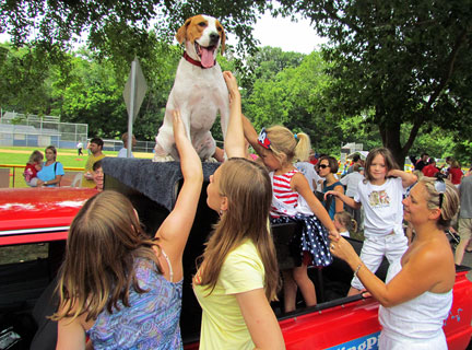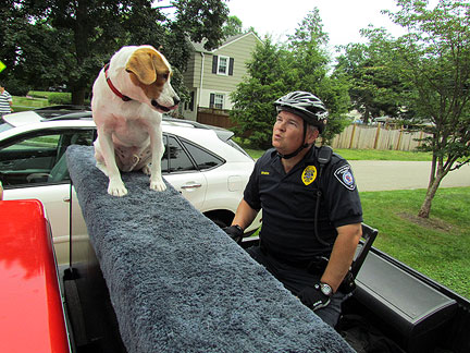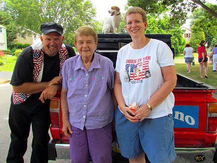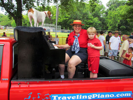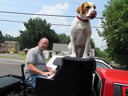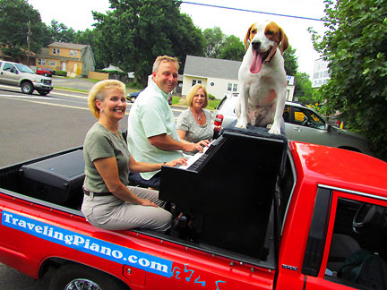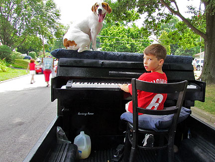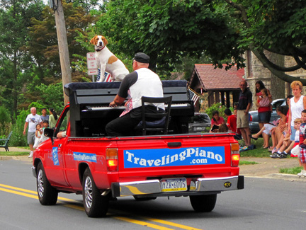 The Traveling Piano breaks squealed as I drove down a garage ramp today. I no longer care. No more repairs to this truck unless it becomes an absolute must. Onward... to Oreland, Pennsylvania. I have friends in Oreland so I joined them for their Fourth of July parade. This is a parade I have participated in for many years. The guy driving me his name was Dan and he said, "I've been watching you in this parade since I was a kid." That blew me away because Dan in almost my age! Hahaha... Bea and her daughter Michelle came to see us. They were at my first performance ever on the Raggin' Piano Boogie truck in 1987! My niece... family in tow were all there to surprise me. It was like a reunion and the town treated me that way. They were all seeing Piano Dog Mo for the first time and appreciative to see us. I have not been in the area for several years. Everyone, having loved Piano Dog Boner... communicated their happiness in seeing me with my new companion Mo. I feel a strong connection with Oreland mostly because of my friend Sid who runs the parade. He has always made it clear that what I have to offer is valued. Mo and I ended the parade. "Its not the end of the parade until the piano man and dog pass by."