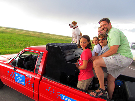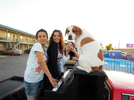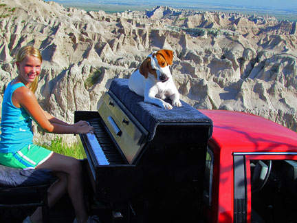 A friend booked a motel room for me in Walls, South Dakota. The lady at the desk immediately expressed interest in the Traveling Piano and I had told myself only a few hours earlier that I would "give it up" whenever anyone shows interest. Enough of holding back, saving energy, waiting for the right time, etc... I took the tarp off and began to play music in the parking lot next to the pool. People meandered around curiously, one guy later told me he wanted to come over to thank me because I created a big smile for him. Three young and pretty girls working at the motel for the summer from Turkey jumped onboard. We all had some fun.