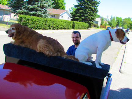 Unfortunately, I did not feel happy about entering Canada. As time went on, nature took over for me and then I became happy. The countryside was full of yellow and green with dark blue skies from passing storms. I passed a sign that read Head-Smashed-In Buffalo Jump play area... obviously a park. That created some humor and levity for me. Still, I am traumatized in this world today, now! As I sat and waited at the boarder I felt real strong about... its just Me and God an Mo. I'm handling that pretty well. Driving for the past few days has felt several times like a parting of the red sea for me. I see severe storms on both sides but manage to drive right in-between them with practically no rain. Today I ended up driving with both windows up for the first time in a long... time. It was actually cold. Then as I was passing through a town I saw in a parking lot with a tent and sign saying windshield repair. I thought that was a little strange but then a few blocks more and I saw four inch mounds of melting snow. How could this be? Then I saw police lights in the road because it was flooded. I had missed a huge hail storm! I thought, "well it cost an extra two and a half hours plus $250 at the boarder. Had I passed here earlier it might have been a lot longer time and $250 for a new windshield. The Traveling Piano windshield would, without question not have lasted through a major hail storm. The day got better and better. Mo got to run for a short while in a park. In Calgary, I met Kirsten who moved to Canada fifty years ago from Denmark. I super love Denmark and have been there twice. Kirsten makes and sells jewelry, has survived serious cancer, has children, a successful business and a beautiful house at age seventy. She looks like sixty years of age easy. She is my host for tonight and possibly tomorrow. Need to make decisions about going to Banff or straight up to Edmonton.