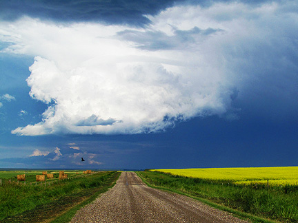 I had it real nice with Kristen for the last two nights. Alas, it is time to move on. Before I left Calgary, I followed her to work to see her place of business and meet the staff. The time was short and sweet. The ride north was beautiful. I went through a fifteen minute storm just long and hard enough to wash the bugs off the windshield. The clouds were amazing. My new friends Judy and Gary live in a rural area outside Edson in Alberta Canada west of the city of Edmonton. I had contacted them last year but it did not work out. They welcomed me this time even though it is the busiest weekend of the year for them. They have three boys and a girl and all their friends camping outside, a big party going on. Before it got dark which is now about 10 pm at night I played some piano and we had some fun.