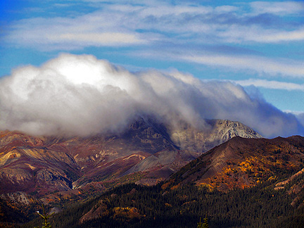 The day began sunny and then it got cloudy, rainy even. I was going to take an eight hour bus ride in the park tomorrow. No oomph, and what if I want to stop and take a picture Went to check out a plane ride as I'd really like to see Denali mountain close. $350 for an hour and six minutes, no landing just flying around with twenty other people... not. I was thinking, "Is the getting onto the plane part of the six minutes?" There was angst about moving on with the journey after taking a two mile hike. Normally after a leg of the journey like I have been experiencing here in Alaska, I head back to somewhere. Not this time, I'm too far away from any home base and its times like this I wish I still had a home to return to. Found a coffee shop with internet, five bucks for a cup of soup almost five bucks for a gallon of gas. I have been getting pictures together. Music seems to have taken a back step even though it still happens everyday.
