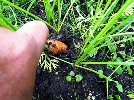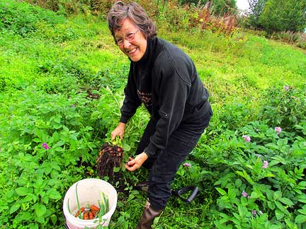 I was treated to an Alaskan dinner of Moose roast. There are a lot of people out in the woods right now, here in Alaska moose hunting. I went with Kathy to the yard to get potatoes (Kathy and Rick are growing eighteen varieties) we got some lettuce and we had onions, broccoli and carrots from the yard for dinner. I picked my first carrot from the ground! On the way back into the house I stripped a couple strands of fresh currants from a nearby bush to stuff into my mouth. For the first time I had an Alaskan specialty item, pickled devil's club tips... wild food.