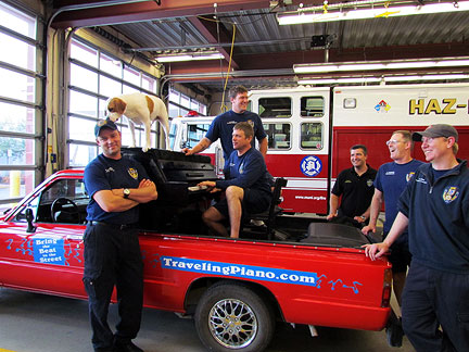 Christine suggested I stay another day with her until I get an idea of where I'm going and this was a good idea. After half the day sleeping I thought I should try and venture out to get some cold/flu medicine. I stopped at the army and navy store look for a pair of sneakers. How that happened from what I planned to do I have no idea. Before I turned the truck engine off a guy came up from Cape Spear in Newfoundland. He's working here laying pipe. For anyone who knows the journey from years past, the Traveling Piano has been to Cape Spear on the other side of the hemisphere. Alaska is full of interesting guys doing very different kinds of work for periods of time. A steady flow of people began to appear. After awhile I went into the store and while inside saw a bunch of fireman in uniform surrounding the truck. I thought I was getting towed or something. They were fun loving guys who pulled the firetruck over in front of the Traveling Piano to check me out as they had seen me on television.
