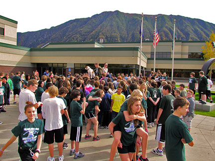 A guy named Jerry emailed me early in the week asking me to come to the Mirror Lake middle school where he is a gym teacher. I did a lot of fudging with it in my mind, then got sick and then it sort of just happened. FUN! I set up in front of the front doors to play while hundreds of kids came running out to surround the truck. About twenty of them played actual songs and many others just "played" as in play the piano by... hitting, banging, playing notes, etc.... All the students in this school, almost 700 take either music or art classes. Eighty five percent are involved with extra-curricular music or art activities. Fantastic and it showed in their enthusiasm for life. Mo was so excellent. He never dealt with so many kids at once. Teachers got onto the Traveling Piano to play and then parents picking up their children.