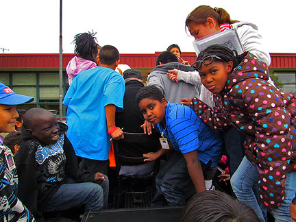 A woman named Denielle had also emailed me early in the week about her after school program. My guard started to come up to protect myself from being used in ways that do not flow with the journey like with structured programs and agendas. I got over myself and called her. She was thrilled and I was thrilled to find another teacher and school system that can handle synchronistic spontaneity for the sake of their students. This was a program in the Anchorage school system at Mountain View Elementary for about seventy kids from all walks of life who have schooling issues of some type. I loved everyone of them. Denielle was waiting for me on the street when I arrived. I was impressed and then first thing... presented me with a new pullover sweater in appreciation for coming. Double points! :) The children and I, we had a lot of jamming together. All I experience with children like this is appreciation from them... for being allowed to be themselves and play with an adult and his toy even if for a short period of time. It does not get better for me because I don't have to deal with the daily challenges that are ever present in this school! Ha, what can I say, it is what it is... love and fun. With both schools I felt honored to be a part of the enormous care I experienced from the teachers and the respect they have for their students. I mean that with all my heart!