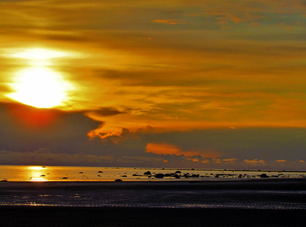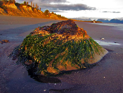 It took two hours to write and send two emails today. I just could not get the where-with-all to function. I did accomplish the task and had the time to do it.That is what I want to focus on. Early evening I had the choice to take the Traveling Piano out to play or walk on the beach with my dog. I choose the beach because we had not done that here in Homer. On one side was a high bluff, the other racks and water with mountains and glaciers in the distance, the sea, the sun setting, I got my exercise by watching Mo run. The sand was mixed with black mud and water constantly ran through it from streams in the bluffs. There has been a bit of fear floating around. It feels like I am leaving Alaska with an unknown future. The fact is I'll be here for a few more weeks, I'm just leaving the top part of the state and as far as the future... shouldn't I be used to not knowing what the future will hold after more than five years of living this way? I experienced an overwhelming feeling a gratitude and with that came a phone call from someone in Seldovia where we are heading tomorrow inviting us to stay with them for the full five nights we will be there.