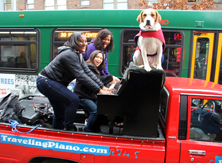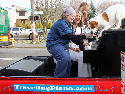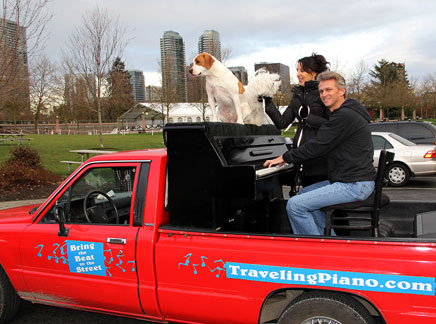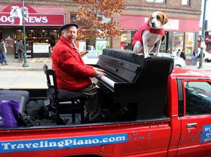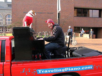 I'll be very curious to observe what happens in this city over the next few days with the Traveling Piano. I have been finding people especially appreciative of the music and the whole Traveling Piano concept, maybe more than ever before. While trying to get one guy up onto the piano to play he says, "I just want to listen to the music." It was so sincere I went for it and just gave him my heart musically. Hearing people yell, "thanks for the joy" and many other validating comments just drove me onward.