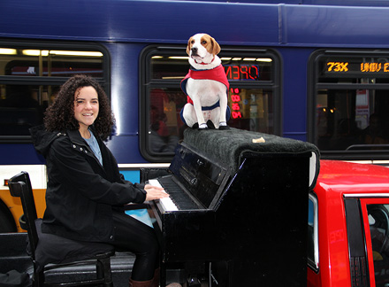 An independent local radio station asked me to stop by at night. Oh my God was that fun! Hollow Earth Radio... part of their mission statement says "celebrate raw talent and imperfections" right up the Traveling Piano alley that is! They just spent raw air time on the street with Mo and I. All kinds of people happened along. A group walked by and seemed not to look at all and then came back for a second take, a guy from Russia rolling out his cleaning equipment having just moped an office floor somewhere, a lady who was having a crappy day and had just finished a crappy piano lesson was walking home and found us... It was a good day full of fun, friendship and respect with musical inspiration and empowerment... very synchronistic and spontaneous. Yum, love all that!