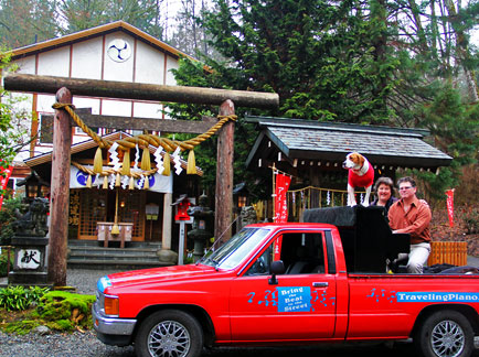 This morning Sharon, Christian, Mo and I attended the Oh Harahi Shiki Taisai Shinto Winter Ceremony at the Tsubaki Grand Shrine in Granite Falls, Washington. Shinto is the indigenous religion of Japan and today is the great day of purifying the root of misfortune in preparation for the new year. My friends having studied Aikida, a form of martial arts at the shrine and they were also married there. After the ceremony we went outside with the congregation to celebrate with two different types of mochi, a sweet dessert, a ball of pounded rice with a red bean paste inside. It was very doughy and rich and tasty!