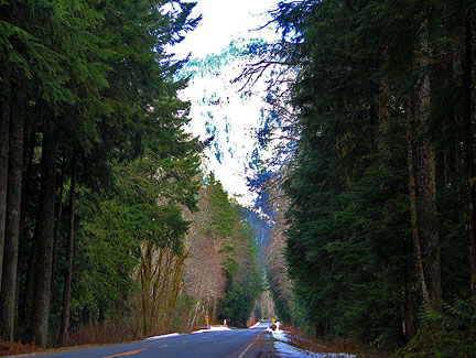 Considering that Christmas is getting close with the rush and bustle and traffic, I thought it a good idea to explore the mountains I saw yesterday. They were the Cascade mountains part of the Snoqualmie National Forest and woo hoo, there were spectacular views but I could not get a good picture from the road. I tried to do the Mountain Loop highway and thought I could... even though everyone I asked along the way thought it might be closed because the snow was too deep. It was closed but... there was a lot of fun to be had through the attempt.