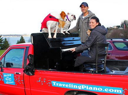 Someone to join up with who has the money and influence to help create a diagonal Traveling Piano streak (clothed) across the superbowl field for fun entertainment sometime before, during the game, maybe at halftime... or to create music with the Traveling Piano on an iceberg in Alaska with an eskimo village in attendance... how about a friggin' Traveling Piano tour for China into the rural regions. I originally sold my house to help fund that dream! A Traveling Piano type television show would be fun. Hey santa, sure would like to hitch a ride on a super yacht and travel around to different continents and countries to create musical fun, friendship and respect with musical inspiration and empowerment. I've been a good boy. Yo, if there's a santa he needs to find me!