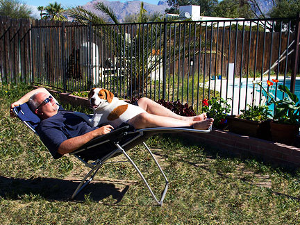 Weeding in the desert dirt is not easy. That is what I did for hours today in Camille's yard. This morning after waking I lounged in a chair outside in the yard with only my shorts while I had a cup of coffee in the backyard. Usually when I stay with people interaction begins soon after I come out of the bedroom. Not here, it is just me and Mo, Camille working at her desk in another part of the house and her dogs, Zoey and Tucker. Online, I purchased my favorite (expensive) lounge chair for the house where I am staying but really the chair is for me. I lounge while realizing I have not enjoyed a backyard since I sold my house several years ago. I Lounge while enjoying the sun on my skin, feeling good with gratitude while listening to the birds, a monarch butterfly floats by... Mo lies nearby in the dirt basking in the sun while enjoying the warmth on his belly. I'm writing this as it is all happening trying to not worry about what life may be like an hour from now. When I put my mind to my work (Traveling Piano) I am completely focused on the work. Since most recently after leaving Philadelphia in July and having traveled through Alaska, Seattle through Christmas and Joplin Missouri after the tornado almost a year ago... I never realize how emotionally draining or physically difficult it all has been until after I am out of experience. I mean they are difficult while in them but looking back is a totally different perspective.