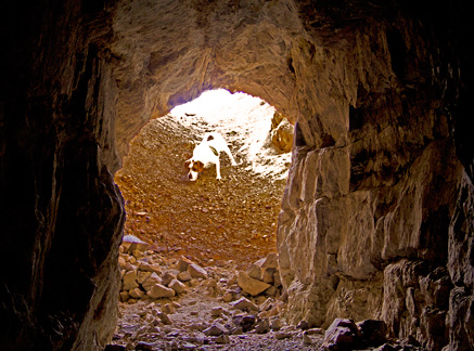 I was heading south but turned west and found a dead end at the base of a bunch of mountains. There was one car with kids hanging out but they were too chicken to come and play even though several thumbs up signals came from their windows and they came out a couple of times to check under their car hood. As I was about to leave a woman named Kathy appeared. She got on the truck to try out the piano and then we went for a short walk. She picked wild flowers for me as we meandered. I found an area where we rode on small winding, bending rolling hills it was just constant beauty at every turn. I pulled off at a random spot that looked like a trail. We got a little lost hiking and ended up at a cave. Later, I found out we were in Old Tucson which I thought was literally the oldest part of Tucson but really it is an old movie studio where television shows like Little House on the Prairie, Gunsmoke, Bonanza and The Lone Ranger were filmed. I was probably in the cave used for many a famous movie. In Alaska I became Glacier crazy and now I am Cactus in the Desert crazy. Mo got attacked with jumping cholla cactus. He came hobbling up to me with sharp spines buried deep in his side and paws.