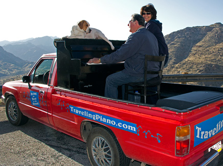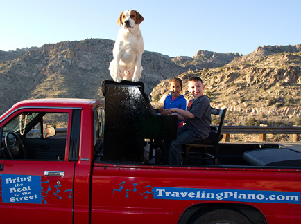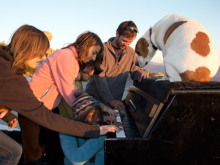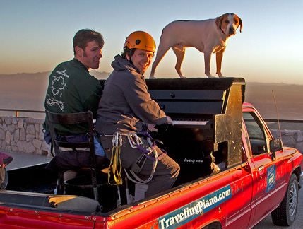 The rhythm of people arriving and departing was just so nice. There was plenty of time for just Mo and me by ourselves. Seeing as the road is all about bends, switchbacks... The Traveling Piano was a surprise for everyone who passed. One guy from Chicago with his wife... people like him, they amaze me. Having never before played on a piano this guy in the construction business, he just got onto the truck without hesitation or thought and played a note of music with total freedom of spirit. Immediately, he began to play two notes with one hand and then began exploring from the white keys to to black keys. No expectations, need to control, fear, repression... I almost asked him if he had cancer or a near death experience lately where he was out to just live life to the fullest and take advantage of every opportunity for something new. But I knew better that some people just naturally take life as it comes.