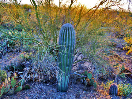 Most of the day was spent working with files on the website because it has been hailing with rain off and on all day. A rare thing did happen (besides the weather). Two people contributed to the journey today. An old friend sent me seventeen bucks just to be nice and a couple I had met in 2011 sent me twenty five bucks. How great it is that a friend would just give me money especially one who has very little for himself and also... many people offer to contribute when I meet them with the Traveling Piano I don't ask, solicit or imply that I am looking for anything... ninety nine percent never follow through so when people say that I usually think, "yea right." Here, today someone remembered from almost a year and a half ago and followed through! Not only do I appreciate the money and thought but the fact that the Traveling Piano left a lasting impression on them. That means everything to me. Of course, if you want to be my friend these days... send money, that is a sure way to leave a lasting impression on me. Ha! ...its true. I love how baby saguaro cactus are nurtured in growth by the shade of a mesquite tree or creosote bush. In all the world they can be found only in the Sonoran Desert of Arizona and Mexico (a few of them can be found in California) And they can live to be 200 years old!