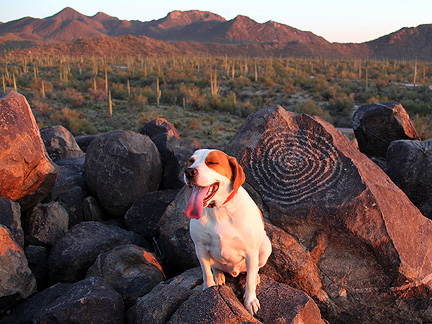 Someone asked, "So whats your story?" I replied that Mo and I were just hanging out. On hearing myself say that, I realized the story is too big and long to tell so it is now just easier to simplify! Amazingly, we ended up on Signal Hill where there is a massive jumble of piled boulders with ancient petroglyphs on many of them (rock carvings esp. prehistoric ones) dating between 7500 B.C. to 1450 A.D… Way back when, there were these people known as the Hohokam who were probably the ancestors of the Native Indian Tohono O'odham people from this area. Ha, I always end up looking for information on the internet after the experience of it. Otherwise I could/wouldn't care less. The art depictions of animals, people, shapes, and events on the boulders were very cool. Creating music in such an open space with all the Saguaro Cactus was even more cool. People finding us there interested in the music more than pictures, talking or the sights was the coolest!