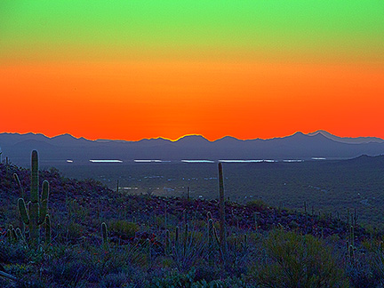 Wow, the shadows of wide open mountains and the shades of changing color were magnificent. It was just a small parking lot in the middle of nowhere with no crowd but as usual, I met people who knew close friends of mine from back east and people with whom I have significant things in common. One couple had been up and across from me on a mountain pass. They heard the music... we had met when I was here in Tucson four years ago. As they drove up they yelled out their car window, "Hey thats not Boner." I very much love when people bring up Piano Dog Boner and remember him. I was thinking about the variety of people who were there and how people from all walks of life enjoy nature. Two different people at different times today described my music as orgasmic. I thought, "slow, easy, quiet meditative orgasmic music for a sunset with a flowing intensity, yep, sounds good to me!"