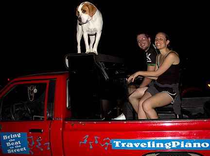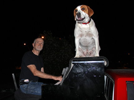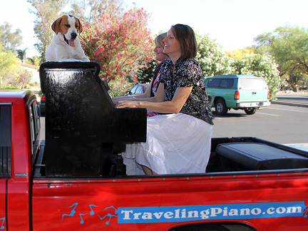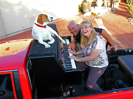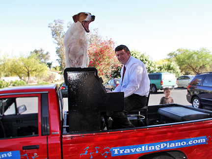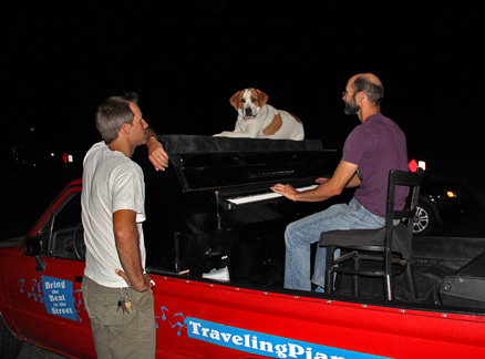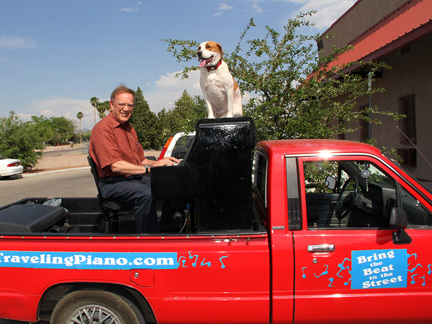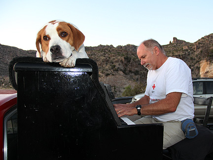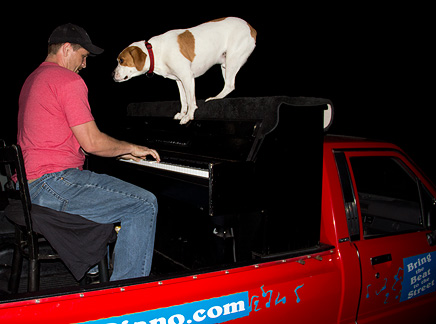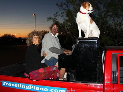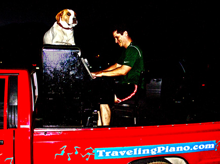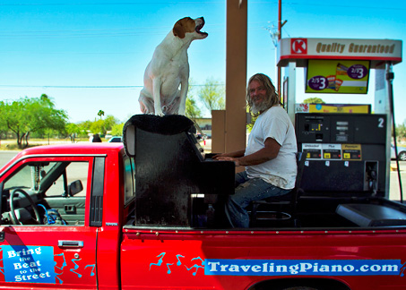 Since the first of this month I've been holding out from posting to this blog page. I was waiting for an active Traveling Piano day because I wanted to put a positive face to this blog, make a good first impression for anyone visiting this website for the first time with people playing on the piano pictures. Overall I want to be always as honest as I can be. Intent on avoiding a negative spin... is that being honest? Who am I out to impress? Of course I want everyone to like me and for this journey to appear successful but not as much as I want to share the truth about myself and the journey. I want to convey the truth more than to have success. That is the truth. So be it. Ouch, if I fail at life! For me, the more truthful I can be the more successful I am. It is always a scary proposition. Here is a truth... the relationship I have with Piano Dog Mo helps keep me alive. I feel we are in a partnership. We have an intense relationship of respect and we are always learning more trust with each other. When I think of gratitude he always comes to mind first. I love him in ways and depths more than I could ever have imagined loving... before he came into my life.