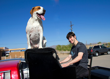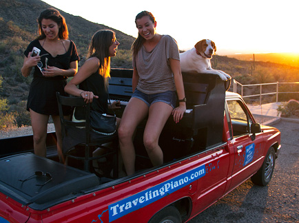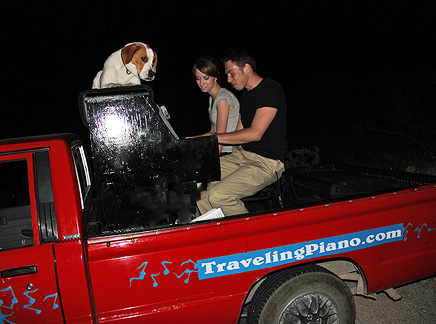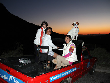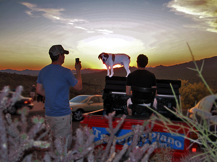 For people to relate to my music on such deep emotional levels... I tend to detach from it like I don't own the experience when I know in fact that I am part of it. On some level it is comical. There is a certain absurdity... a peculiar conjuncture... the discovery of a piano on the back of a pickup truck with a dog sitting on top of the piano in the middle of a desert with a guy creating music from his soul for the salt of the earth. Sometimes I see it as ridiculous the love, the beauty, the reality, the truth... after the music ended I could not keep my eyes off the sky as we talked. The pastel shades of blue, green, red and yellow in the distance behind dark silhouettes of mountains and above... the twinkling of stars forever against a deep blue backdrop. The way the mountains crested around us it looked like I was witnessing a bowl full of sky. The drive back to Camille's place winded down a road into a splendidly large full moon rising out of the Tucson city lights.