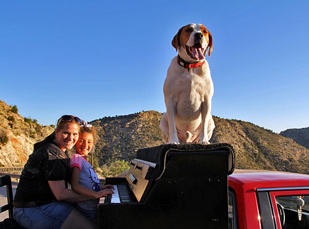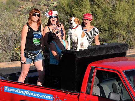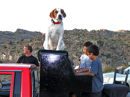 People told me that they could hear the faint sounds of piano music from up the road at another overlook far away and 3000 feet higher. I always wondered about that. The sound must travel for miles in the mountains and for the short periods we are "doing our thing" ...create a lot of wonder for people. Can we talk joy? A Cocker Spaniel found her way on top of the piano with Mo and they were immediately like two peas in a pod. A young fellow sat in the truck bed beside me and continuously bopped to my music. Can we talk double joy? After everyone left the area it was just Mo and me in silence in the desert mountains, with music and shooting stars in the dark. There were unusual sounds that I just let be without too much thought. Driving down the mountain into the city I could feel the temperature rising.