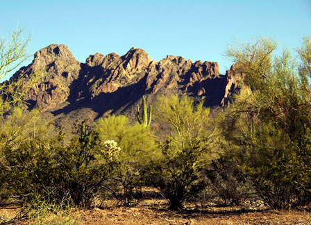 I stopped the truck right there on the road and got out to take a quick picture just as a family happened to be walking by. No other people were around. Amazingly enough we had met four years ago on Mount Lemmon. In this city of almost a million people and me being on Mount Lemmon for a couple hours on one day four years ago we meet again! The parents were visiting from Michigan. Dad at seventy years old was taking piano lessons. He pulls out his wallet a piece of paper folded many times over. He had his piano sheet music with him in his wallet!!! He sat and played some blues boogie. Wow, was that a crazy good time, yes it was! I drove through areas of Tucson where I thought, "back in Philadelphia there are five million dollar houses on land worth two million. Here there are two million dollar houses on land worth five million." I saw some beautiful property in most beautiful environments today.