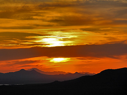 It was one hundred and one degrees today in Tucson. It has taken the Traveling Piano only a few months to go from zero to a hundred. (alaska to arizona) I have been known for my experience of extremeness. :) What is with the fact that I have two sprained middle fingers? The piano speaker, I began to trouble shoot with it. I took the speaker wire apart to make sure the connection was good... undoing the plug, tape, screws, holder, cover, stripped new wire and put it all back together backwards! There is not a time I can ever remember getting anything right the first time... never. Do you have any idea how frustrating that can be? At sunset I drove to a local park to test it all out. The sunset was the brightest to date and I began to kick myself for not being out on a mountain in it. Not a moment... I do not want to miss a moment of nature if possible. I have to keep reminding myself there is time, I have more time to enjoy, maybe. It was not three minutes after I began to create music that a guy rode by on his bicycle. A moment later he returned and asked, "Do you come here often?" I told him it was my third time. He had seen me last time, has a piano, was discouraged from taking lessons when he was younger and wants to learn how to create music. I have to laugh... my time there was for him in fact as soon as we were done I left. A half hour before we met I had no plan to go out and create music or go out period. Hopefully he got my message... start with one note, play one note and enjoy, stay with one note. Play and listen everyday for short periods of time like a minute until you begin to hear yourself, your own words, rhythm, your spirit.