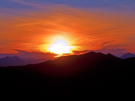 The temperature is in the nineties. Camille has an evaporative cooler in her house. For the cost of using a fan it cools the entire house through the evaporation of water. Unfortunately it does not work so well in any place with humidity but man if it did a lot of people on the east coast would have a great way to save money on energy. I was working on computer files and Tony a guy I had met last week called. That helped to push me out for the sunset. I'm really glad I did. Lots of miscellaneous people stopped by. Surprisingly kids and couples come to this spot to do what kids and couples do in parks. The difference here is that it is so open. Where there are trees kids get lost in them. Where there are rocks they get lost behind them, ha.