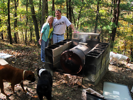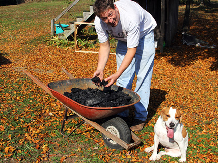 I could have stayed there for hours but wanted to get back to Joe and Joslyn's place to play while the sun was up. On a hill overlooking rolling country, I improvised for about a half hour. Joe spent the afternoon mowing grass and making charcoal to sell in his store. I had never thought about charcoal as something you make. I always thought it was simply coal. Its... charcoal as in wood carbon made from burning without oxygen. Duh... I never before put two and two together as in burnt charcoal wood for grilling.