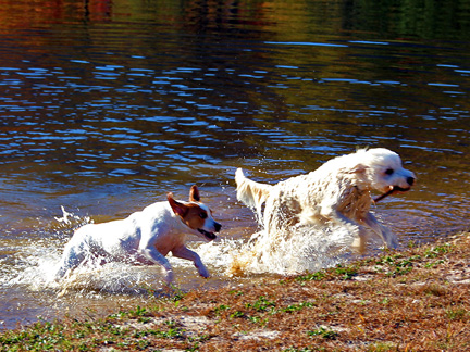 Often, I think and feel like I am going to die soon. Thinking does get me into trouble at times. It is what it is. Feelings are not always facts but never the less, urgency can sometimes help me to enjoy the moment. While creating music alone by the lake with a backdrop... layers of mountain, it was easy to remember that I am in heaven... now. Don't want to miss it and want to enjoy it for all it is worth. I might not as in familiar song words... not " Be Coming Around the Mountain " ...again, once I leave this earth. Even with trouble and difficulty in my life I want to know the reality... it's all good. Secretly while creating music I was pining for someone to appear with whom I could interact and then it happened. A couple form Annapolis with super friendly dog stopped to listen. I invited them over. Mo jumped off the piano for some fun. The visiting dog jumped into the lake Mo followed and playtime began. Super fun and super friendly people, Mo exercised, me fulfilled and when they all departed... another couple appeared.