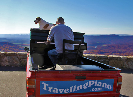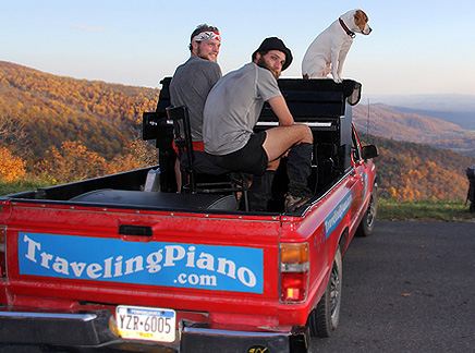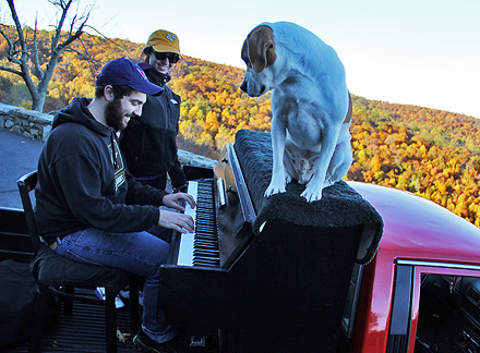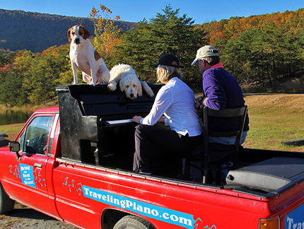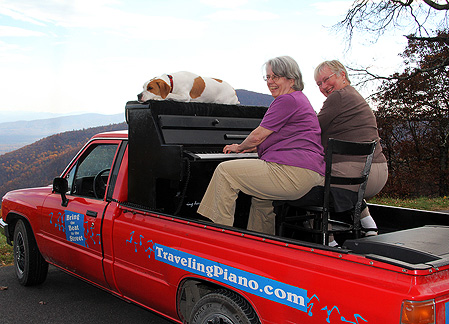 At the first overlook it was like, "Oh, my God I forgot that this is tourist time? It is prime time for mountain in the fall and unlike in other areas of the country the Traveling Piano has been in over the last few years this area is accessible and not far from heavy population. At the third overlook I pulled in and jumped on the piano to create some music. I was like a magnet for everyone. How could I not be? I said to myself, "Give it up Danny you know you want it. The whole time driving here you were saying your mantra of Fun, Friendship and Respect... what do you expect?" The journey took over it was not going to be all about me and my personal musical experience of nature. In spirit, I put myself in the position to be forced out of myself. I do love that you may know. Ha, love it, hate it, love it, hate it, love it... I really wasn't thinking about interacting with people before I left the cabin. I would have shaved and looked less rough around the edges. People were thrilled with what they found in Mo, the Traveling Piano and myself.