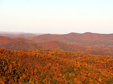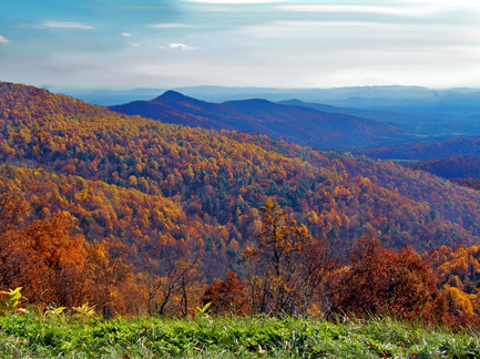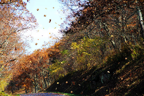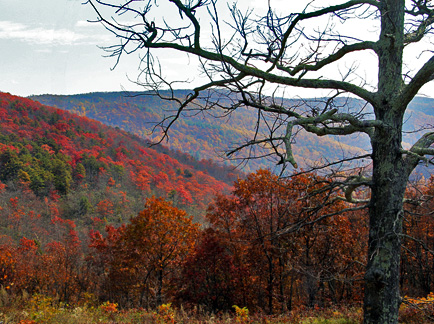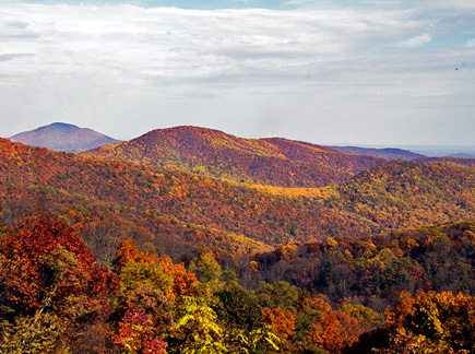 Today was more of yesterday except for the fact that I took some of the most beautiful pictures of this journey to date... all with a messed up lens hairline through every photo... unrepairable although I was able to do a good job for the small web photos. Major disappointment and frustration and as I right this I am feeling agitated. I felt that way last night and hope I am not going crazy. The drive down Skyline Drive today I expected to take a few hours. I wanted to get my moneys worth. The fifteen bucks paid out yesterday is good for a week. Really I just want to make the most of this amazing weather at the most colorful time of fall in one of the most beautiful places in America for this time of year. Nine hours after starting, we ended up in Waynesboro Virginia. Motel time... what to do, what to do. The place I was going to stay in was dank, run by Indian mafia, bad attitude and extra charge for a dog... I almost drove all the way back through the night but ended up in Harrisonburg because the lady I called at another motel for availability sounded nice and down homey on the phone.