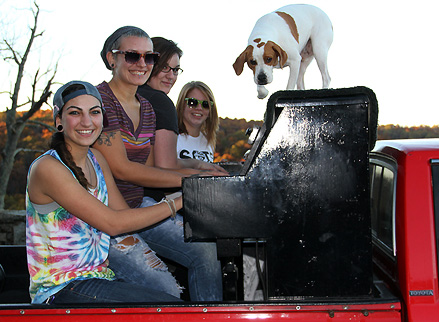 After forcing myself to get up with an alarm clock at nine in the morning I showered, had a cup of coffee and rushed off to see my friends Joslyn and Joe. My natural sleep cycle is to go to bed after four in the morning and wake up at noon or later. Joslyn and Joe's daughter gave Piano Dog Mo to me several years ago. Today they opened up a small bait and tackle shop near where they live. It is close to the Sleepy Creek wilderness area that is used for hunting and fishing. There is a lake five miles down some rough road from the shop. I decided to save that vista for another day if it looks like the truck can make it. As it was, I had to take the Traveling Piano up and over a high zigzagging mountain road to reach my destination. Ha, the truck now only goes twenty miles an hour up steep hills.