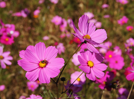 Before it got dark today I began to drive back to West Virginia from Virginia and was going to stop to have dinner with my friend Barbara but as soon as I began to drive I could barley stay awake. While immersed in nature, music and people all day I had no awareness of being tired. As soon as I stopped exhaustion set in. It was not an easy drive especially after it did get dark. Eating Burger King, Subway and Virginia baked peach pie with ice cream for the last two days... I am fairly certain that did not help my energy level. My weight is a big concern but I refuse to suffer by mentally beating myself up I'll just suffer physically, Ha! (ugh) Along the roads, Cosmos are blooming in many spots. They are old farm, garden flowers and I love them so.