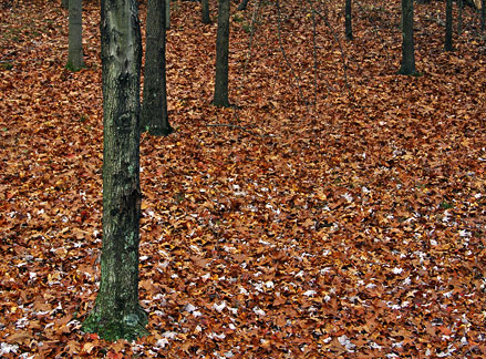 I spent the day slowly getting totally caught in the hype of a "Perfect Storm" the storm of the century with gusts up to 80 miles an hour heading right for the New Jersey shore and Philadelphia, PA my home town. Part of me so wants to be there and with people I know and I am stuck here in West Virginia with just Mo where the outer storm bands will reach. I am almost sure my internet will go as well as power. I have candles and luckily propane heat at my disposal. I hope electricity is not needed to run propane heat I have no idea. I am very concerned for the Traveling Piano out in the wind and rain. It is all just part of life, eh? When I woke up I looked outside to see the most beautiful deep smooth blanket of fall leaves on the ground I had to take a picture. For the past few days Mo and I have played in leaves a half foot deep just like kids do and loved it!
