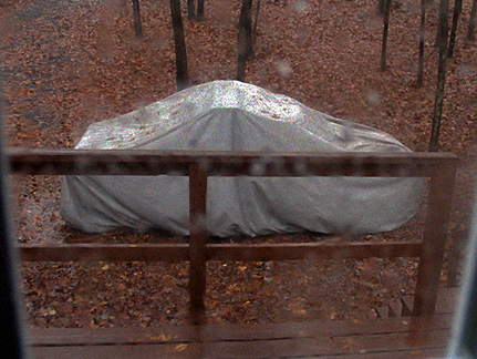 We are experiencing a hurricane named Sandy. Its a big mother. Through the years I have worked very hard to not get caught in weather hype. This is different... I got caught in the hype. Fear would be a better word. I am not into the idea of this storm being fun and had no idea we were going to be in the bubble or that three feet of snow is possible... the weather is so thick right now I can't tell if its raining or snowing and its just the cusp, the beginning... but here I am still online? Wish I was not in such a flimsy cabin but I can deal with anything... it is just bringing back memories of Hurricane Katrina and the aftermath of Joplin, Missouri's tornado. I have a good cement cellar area to crouch in if necessary that will not flood more than a foot. This storm, the elements of three weather patterns colliding on a full moon... I called a few friends with a reminder to keep their garage doors shut so the air current does not circulate into the house and then... the big door under the house I am in... blew off making the house easier for a nice lift off from the ground. I had heard creaking and rubbing of wood earlier. Having walked around the house looking out the windows for trouble and seeing none, I went into denial. How the door under the house, under the deck could get sucked off from the wind before anything else big happening I have no idea. Before the power went out I sent a facebook message to my friend Dawn in town to ask what it was like there. She knew I was panicking and had an errand to do in the area and a half hour later was at my door surprising me with friends Michelle, her son Conner... and some vegetable beef soup. I realized in an instant that the full moon is responsible for much of what I am going through, the panic. Her visit was a clear sign that I am being cared for... "angels in our mists" or something like that. I cannot imagine the Traveling Piano getting through this storm sitting outside in gusts of wind that may be up to ninety miles an hour. Dawn left and returned a half hour later again with dog food (I only have enough for three days) and a hoagie for me. I know I am being taken care of, it was almost unbelievable. This is a totally new experience. The sounds outside are amazing with roaring, banging, whistling wind and the trees are flying around. There will be many trees down because the trees are pine and have become too large on the mountain to withhold much pressure and I hope one does not fall on this house. I filled the bathtub with water to flush the toilet once the power goes... big chunks of ice in the freezer and about eight gallon jugs of drinking water are sitting on the floor. If the truck gets destroyed, the house falls down around me... I will be sustained through friendship in knowing I am not alone... also I have online facebook friends I talked with for most of the day! ha...