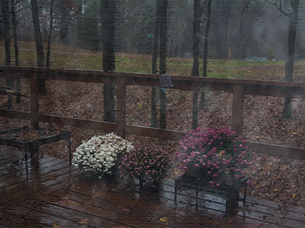 It was dark like heavy rain all day. I waited but the rain never happened. The temperature is very mild. I just finished twelve hours of work posting the pictures into the Web Galleries from the last few days. I never want to get behind with that work again. There are still over a hundred scenery pictures to post. I enjoyed just relaxing in the clouds, listening to autumn crickets and the nuts falling from trees onto the wood deck outside. The randomness of the nuts falling, a couple an hour... it interests me what makes them decide to fall off the tree.