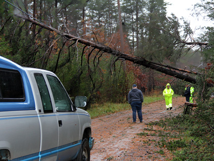 I saw a neighbors car pass by and return too quickly... and then another neighbor walked up the road, like to check something out... and then of course I had to do the same... and then the power went out. Lots of forrest trees had fallen from the storm. One was dangling from the power line. The tree was electrified smoking, sparks even... and it was hanging across the road. No one was going anywhere. I had planned for trouble with water in the tub, drinking water in gallon containers and blocks of ice fro the fridge and freezer, propane for heat but... I forgot to grind coffee beans. No electric for the grinder and I need my morning coffee!!! Later in the day everything returned to normal so I drove out to vote early... an hour drive to find that the people running the booths just decided to close early. Stupid people and so wrong. In my two minutes there... five other people were also turned away.