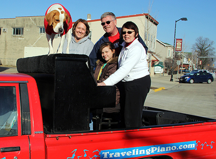 Today was sunny with the temperature in the thirties, low forties... the piano was working and it was the first time I had it out this year. I was driving around the streets saying out loud to myself that I was looking to create Fun... Friendship... Respect with Musical Empowerment and Inspiration. After giving up on finding a sunny end spot on any street I randomly pulled into a parking spot with no cars or people around... ha, and began to play. It still takes effort and guts to do such a random thing, every time. A thirteen year old girl named Abby came over from across the street. She had been in her grandmothers store. Then a couple in a car driving by looped around the block to stop. The journey went into full swing as in energy, passion, everything that it is, etc... I was about to stop and saw out of the corner of my eye a guy from across the street with a black bag. I just knew it was the newspaper guy so I decided to stay around to let him get his shot. I suggested he go get the girl across the street so she could be in the newspaper playing the piano and then as always happens more and more people began to appear... all in perfect timing... one group would finish up as another came by. I realize on some level I did not drive all the way from West Virginia to check out Amy's house as much as I needed a reason to get going again with the Traveling Piano! Always I need balance... hibernation, work, hibernation, work, more hibernation as time goes on but I sure did experience a lot of joy with people in Eaton, Ohio today!