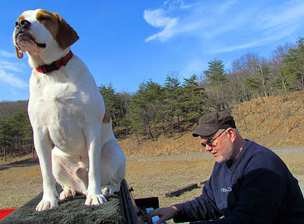 Mo spent the better part of yesterday his third birthday running through woods fulfilling his insatiable desire to hunt for deer poop in West Virginia. On the way out of the park I waved down a car to have our picture taken. A conversation started with a young guy named Josh who plays guitar. Before coming outside today I had thought about bringing the piano. When I began to hibernate in January I had taken everything indoors. Damm, I missed the opportunity to share the Traveling Piano with Josh. As soon as I got back to my digs I pulled everything outside and spent two hours trying to hook it all up. Did I succeed? No. I can never remember how everything works and having dyslexia does not help! Eventually I'll get it all going, all in due time. The passion to share the Traveling Piano and everything about it... strong as ever. Last night Mo and I laid in bed under a goose down comforter. On one side of me Mo was stretched out with his head buried in my arm and on my other side I watched the movie Silver Linings Playbook on my computer. Just me and my dog and a good movie "being" without distraction and in total comfort... heaven. Today we drove to Englewood, Ohio. It took eight hours. I'll talk about this more tomorrow.
