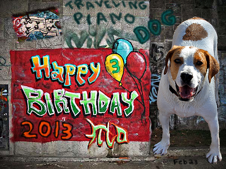 I thought it was today that Piano Dog Boner died three years ago. It was yesterday. It is a good thing I missed the day. Maybe I am beginning to forget it. Do I want to commemorate his passing? Why would I do that? If anything I would want to remember his birthday but... really all I want to do is remember how much I was able to love him and how much love he brought to my life. The relationship we had together will always be great. I realized something from Piano Dog Mo today. Boner always turned my mushy, cutesy, smothering emotional love into play. With Mo, I am now realizing that dogs express their emotional love through play. It is so important for me to have "play together" in a relationship. Mo is everything Bo was and more. That is how life should be. Every generation, every new relationship getting better and better, growing more towards more love.