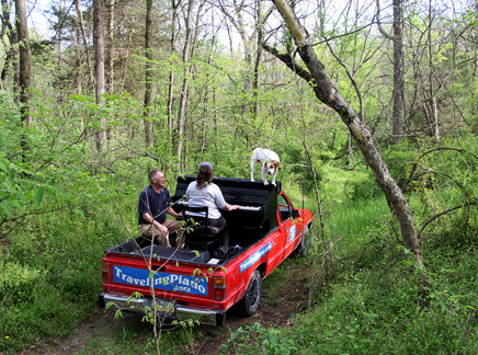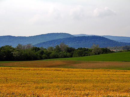 We headed for the woods of Washington County, Maryland to create and record music while my new friend Leigh wrote poetry and his wife Lori roamed into the woodland. They have ponds with two to three feet in circumference super sized snapper turtles. Of course I want to get a picture of one. The best time is eight in the morning when they come out to bask in sun. So much for a picture... I'm still sleeping at eight every morning. Turtles being cold blooded reptiles they need warmth to get moving. I've been hearing new terminology like, "snapping turtle jugging" a way of fishing and also that the turtles are shy and will dive for water at the first sound of "footfall." It felt good to drive the truck over grass and rough terrain just to know it can still happen. Leigh had a truck nearby to tow me out if needed. When I finished creating the music, the recording connection had not been completed, nothing recorded. Hate when that happens!!! On the way today, on route 70 there was a serious accident and all traffic was stopped for miles. Luckily, I was at an exit which took me to where... I had no idea which is always good and... anything is better than to be stuck sitting and waiting in traffic. There were a few other cars that had also taken the chance but they were all... gotta go, gotta go, gotta go. Every time three or four cars would pile up on my bumper I'd just pull over and let them pass because... driving through rural Maryland country on a small road with sweeping vistas, mountains and hills with springtime colors everywhere and something new and fresh at every turn, passing through unexpected small old towns on a warm bright sunny day... it just does not get better.