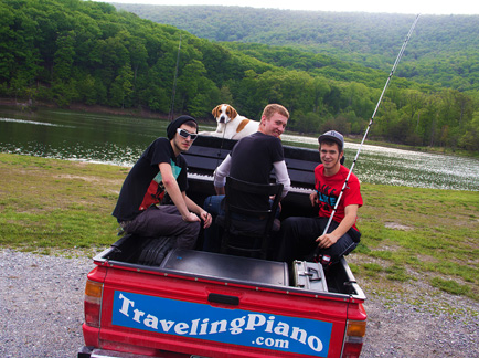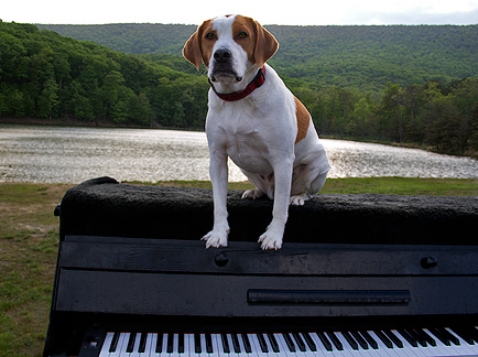I really didn't plan on going out today. How many times have I said that in the past? Lots... Anyway, in not planing to run into people I didn't shave or care about how I looked and wouldn't you know it... at least four different people video taped me... ugly videos lol... thats ok, I don't think there can be worse pictures of me then are already online forever and ever. There were more people around than ever before with fisherman, campers hanging out... there was a guy who mountain biked up to the ridge from where we were. That was a major feat. I hiked it a few weeks back and it is steep! When he came back down he said while going up he was trying to connect to the music to give him the strength to keep going. Several different people used the words magical moment today. A couple came down from a cabin they were renting up in the woods. For several days they had been enjoying the music and today they wanted to meet Mo and the Traveling Piano man. I worked on keeping a balance with the activity going on as there was more energy than usual. There was no keeping Mo out of the water today! Someone showed me a picture they had taken earlier in the day of a two inch in circumference coiled up copperhead snake on a nearby path. I hear about them almost everyday. Mo found a box turtle walking across a path yesterday and the way he acted towards it, well if he ever comes across a snake, i'm just going to have to let that be all in gods territory of operation.