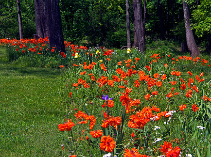 At nine thirty in the morning my friend Sherrie called waking me up after six hours sleep. I had to get up and answer the phone because the call would have gone to the answering machine and that would have beeped continuously until I dealt with it. Sherrie wanted to get together and I had errands to run near where she was in Maryland. Two days in a row with six hours sleep, I didn't know if I could do it. After some strong coffee I was still dizzy not being used the feeling of having so little sleep. I was able to push through and get going while wishing I could do that more often. On the way to Maryland I stopped and took pictures of a poppy patch that had just peaked a day or two ago. It was something to see but oh, how I wished I had seen it just a day earlier.