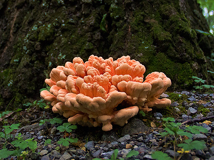 I've been preparing to leave like I will not be returning here, where I have been staying. Late in the afternoon I went out to create some music. I ran across what I think is Chicken mushroom growing at the base of a tree while remembering last year how mushroomy this place in West Virginia is at this time of year. I was too "chicken" to take a chance and take it back to fry up with some butter and it looked so beautiful I did not want to destroy it if I couldn't eat it. The bugs are out full force and even the new repellant I have been using did not work. Spiders everywhere are eating me alive. I'm trying to keep the place I'm in clear of them but in my sleep they get me! Gross, eh? Each bite, the itch lasts for almost a week. Let me get back to thinking about the beautiful mushroom and the picture I got of it. When I upload it to the galleries there will not be any croping and it is a winning picture for sure!