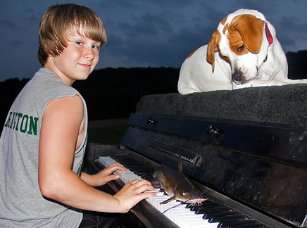 Priorities... the internet went down for twelve hours and it made a difference in my life and not a good difference but adjustment came quickly. I got the picture galleries here on the website up to date, listened to some Chinese language tapes, sat out in the open air with the crickets, cleaned up some and then when out to the park. Today was fulfilling. Not many people have been getting onto the piano but that seems real ok by me. I'm not into pushing anything. In practicing the old songs I remembered that I used to know how to play Scott Joplin's The Entertainer. Having been a long time since I last played it, the memory came back to me! How memory goes in and out of my consciousness will never cease to amaze me. I ran into a local preacher with his wife who I had met before. I created music while far away across the lake there was a kid fishing. I had no idea his dad was also fishing on the other side and they were connecting via cell phone trying to figure out what was happening concerning the music. I met them. The guy at first was reserved saying in a minimalistic way that the music was pretty good. As we talked (I laugh as I write this) his descriptiveness became more and more detailed with feelings about the experience. He started to talk about the clouds and stillness and how the music I was creating was lifting him up, the nature how special it all was. That of course gave me an awesome feeling. His son Landon jumped onto the piano with the catfish he had caught. Mo got his own first up close experience with a fish on the piano keys. On leaving the area a clarifying thought passed by. I create music for ... insert your own descriptive word here be it beauty, glory, love, whatever... I create music for the ... of God. Specifically... God as "you" individually understand. My understanding of God in my creating music is irrelevant.