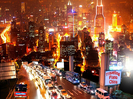 With the rain and periods of just strong wind today, it felt like autumn. Its been fun going with the flow and enjoying the variety of weather. My goal of taking the Traveling Piano to China has never left my mind throughout this journey. Now it is time. China or Bust. Thats it. And it is hard for me to say that without... I think, I hope, naa something else or... ask myself if I am willing to die there, never return, or suffer and... what do I want to do there if not everything or maybe another try for Argentina, Europe would be easier, just stay here in the states and roam, blah, blah, blah. Next is to do away with the curse of "hows." I really, really want to block all that out and just focus. I must use the God said to Abraham bible approach of "go to the land that I will show you" because that is what I have always felt in a way. The security of where I have been staying here in West Virginia this year has been filled with trepidation but once I decided to not let that get in the way there has been no problems. I needed this stay and will continue to just accept and embrace the continuing process... goals achieved or not. First things first so learning the language is a must. While wanting to get into better physical shape and make Chinese connections I must learn the language as a sign of respect and so that I can deal with whatever while there. I flunked out of Spanish in highschool and tried many times through the years to learn French. Some people say Chinese is one of the most difficult languages to learn. For me... nothing else can be easier because its all just as difficult! Ha, can you see me in the picture I created of the Traveling Piano driving into Shanghai?