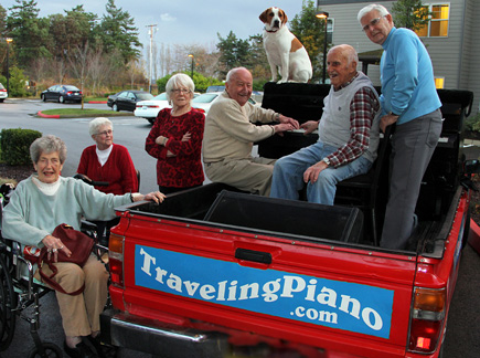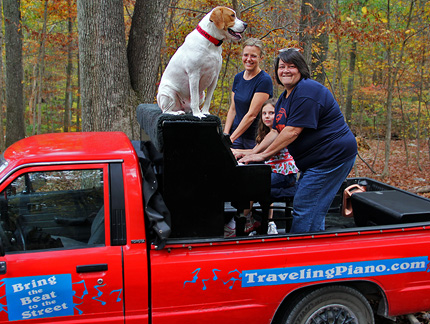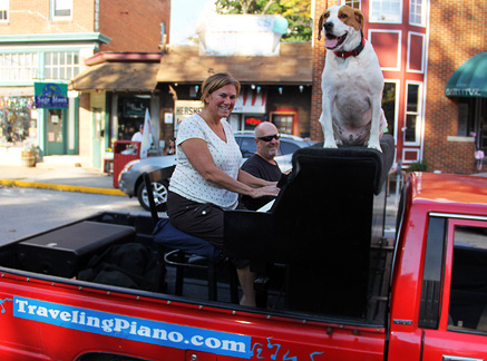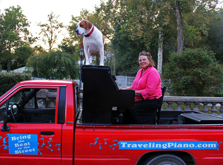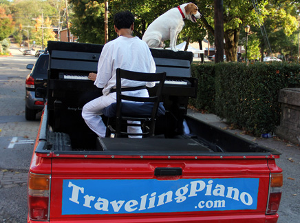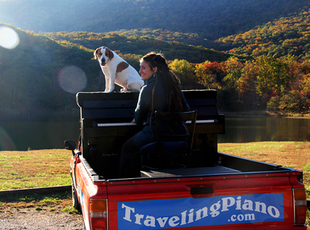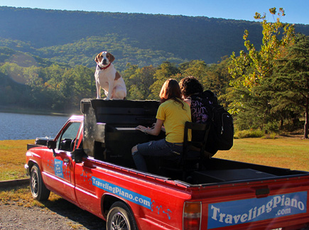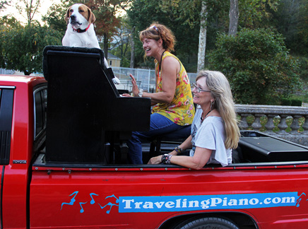 So back to the park. The music must have been exceptionally emotional. When I finished playing the guy who was sitting came up to the truck for a Traveling Piano experience. He was in his late seventies and said when he heard the music it felt like he was in heaven. He asked if I thought music was the language of the universe. Then my friend Paul appeared with his dog Mollie. He had been searching the park to find out what he was hearing. Paul began to describe his finding us in the park. He was walking and hearing sounds that were unidentifiable. While trying to figure what he was hearing, at first it was not like music... maybe like wind-chimes but the sounds were not high pitched enough. There was a sort of rumble to it. He said part of him was thinking it might be me playing music in the park somewhere but had mixed feelings about that because... he almost did not want to solve the mystery. It was a beautiful, spiritual sort of feeling and experience. Both guys said this. We were talking about how the music is more amazing when people only hear it. They become compelled to search for and find it. When they don't see it happening, it is truly their own experience of spirituality, god, the universe, imagination, whatever. I knew exactly what was being heard. It was my gratitude expressing love.