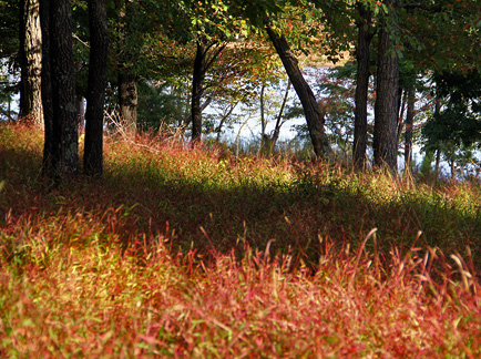 I called the Shenandoah Virginia National Park tourist bureau as I'd like to see some fall color and create music in it as I did last year on Skyline Drive. The national park road is closed and I asked what kind of barricade was there because I'm ready to create some civil disobedience with the government shutdown that is happening, restricting my being able to traverse onto "my government"? ...land to enjoy nature. It's awful, no free country here, thats for sure! The lady said seeing as there was four days of rain a lot of the trees have already lost their leaves. I'm just going to take it all one day at a time. Today, I drove to the nearby lake where I often go. The temperature was about seventy degrees, oh so nice and the fall color, I don't think it has peaked yet.